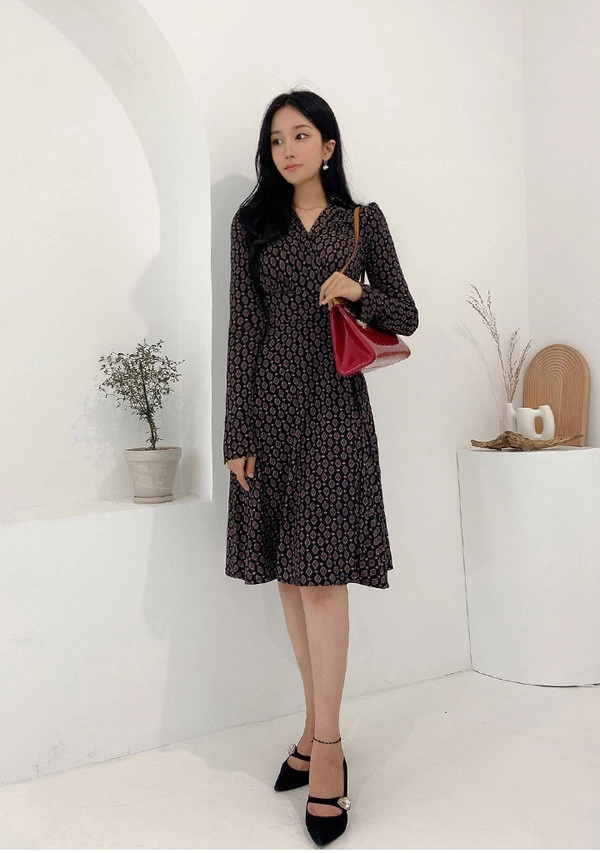 고급스러운 체인 패턴이 조화롭게 어우러지는 랩블라우스입니다.