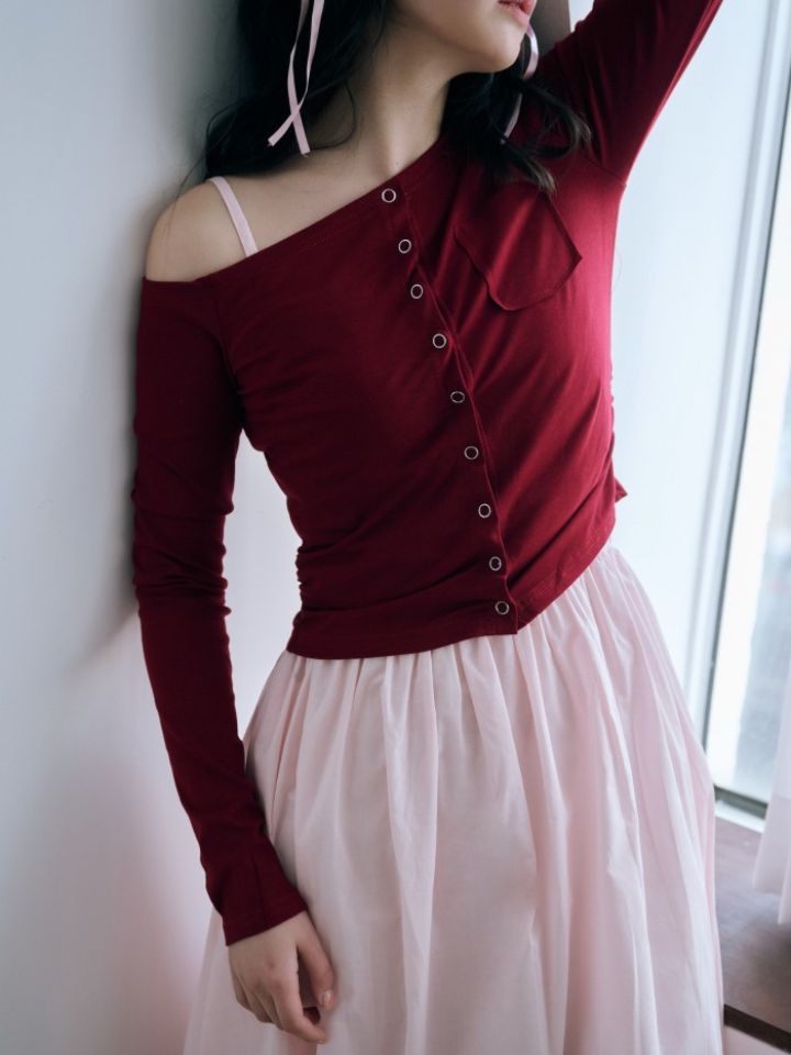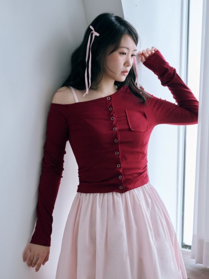 트렌디한 스타일링이 가능한 언발란스 가디건으로 와인과 블랙 2가지 컬러 출시되었어요