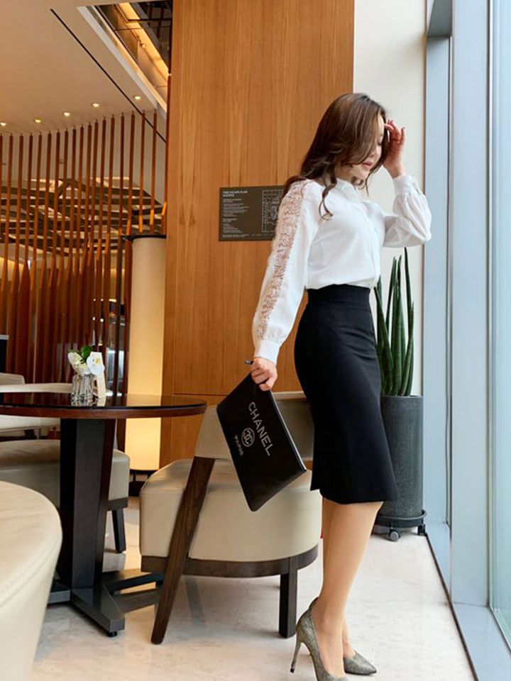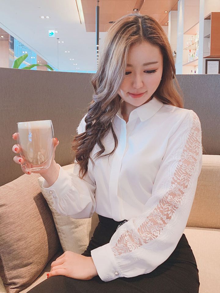시스루에서 은은한 우아함이 소매끝까지 엣지를 잊지 않는 블라우스예요.