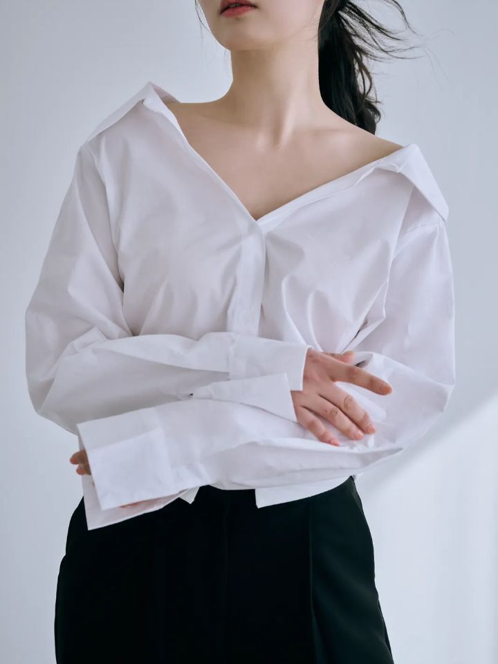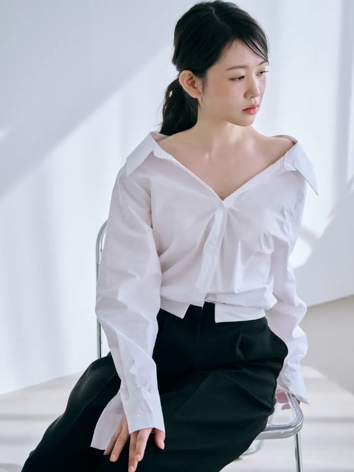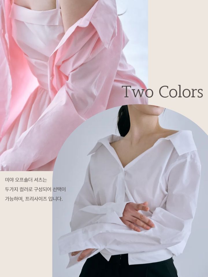 미야 오프숄더 셔츠. 화이트와 인디핑크 두 가지 컬러로 다양한 무드를 연출할 수 있으며,