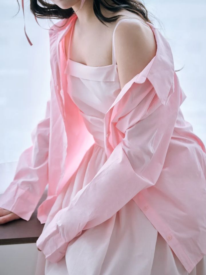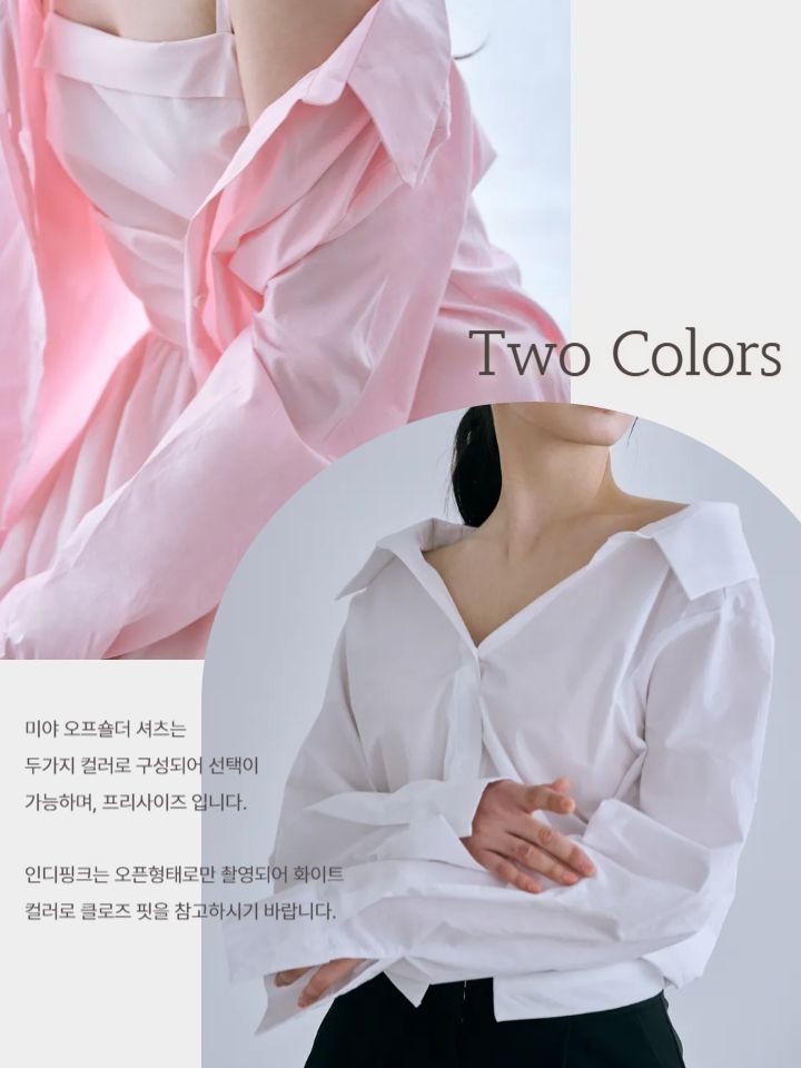 미야 오프숄더 셔츠. 화이트와 인디핑크 두 가지 컬러로 다양한 무드를 연출할 수 있으며,