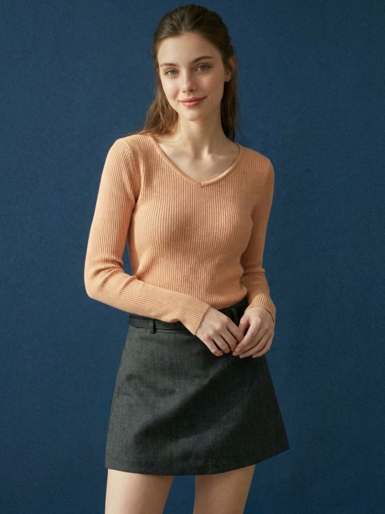 소매와 바디 전체가 슬림하게 떨어져 아우터 안에 입기 좋고, 스커트나 팬츠 어디에나 매치하기 쉬운 데일리 니트 아이템입니다.