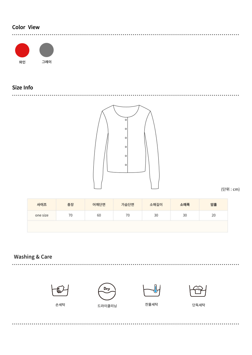부드러운 촉감과 가벼운 무게감 덕분에 간절기부터 겨울까지 다양한 룩에 매치하기 좋으며, 그레이와 와인 두가지의 고급스러운 컬러감으로 스타일링의 완성도를 높여줍니다.
