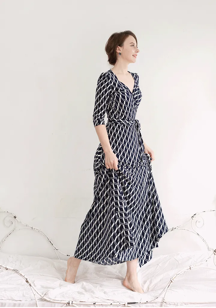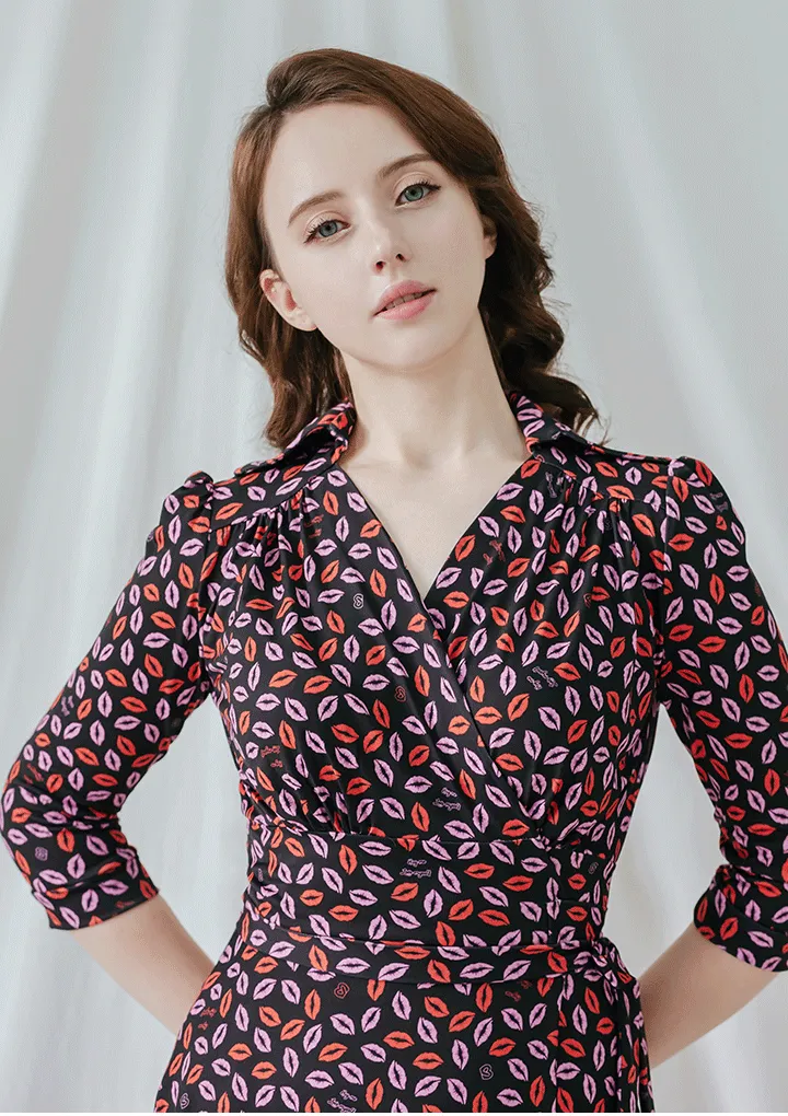 블랙에 레드 포인트 패턴이 고습스러운 맥시 랩원피스 입니다.